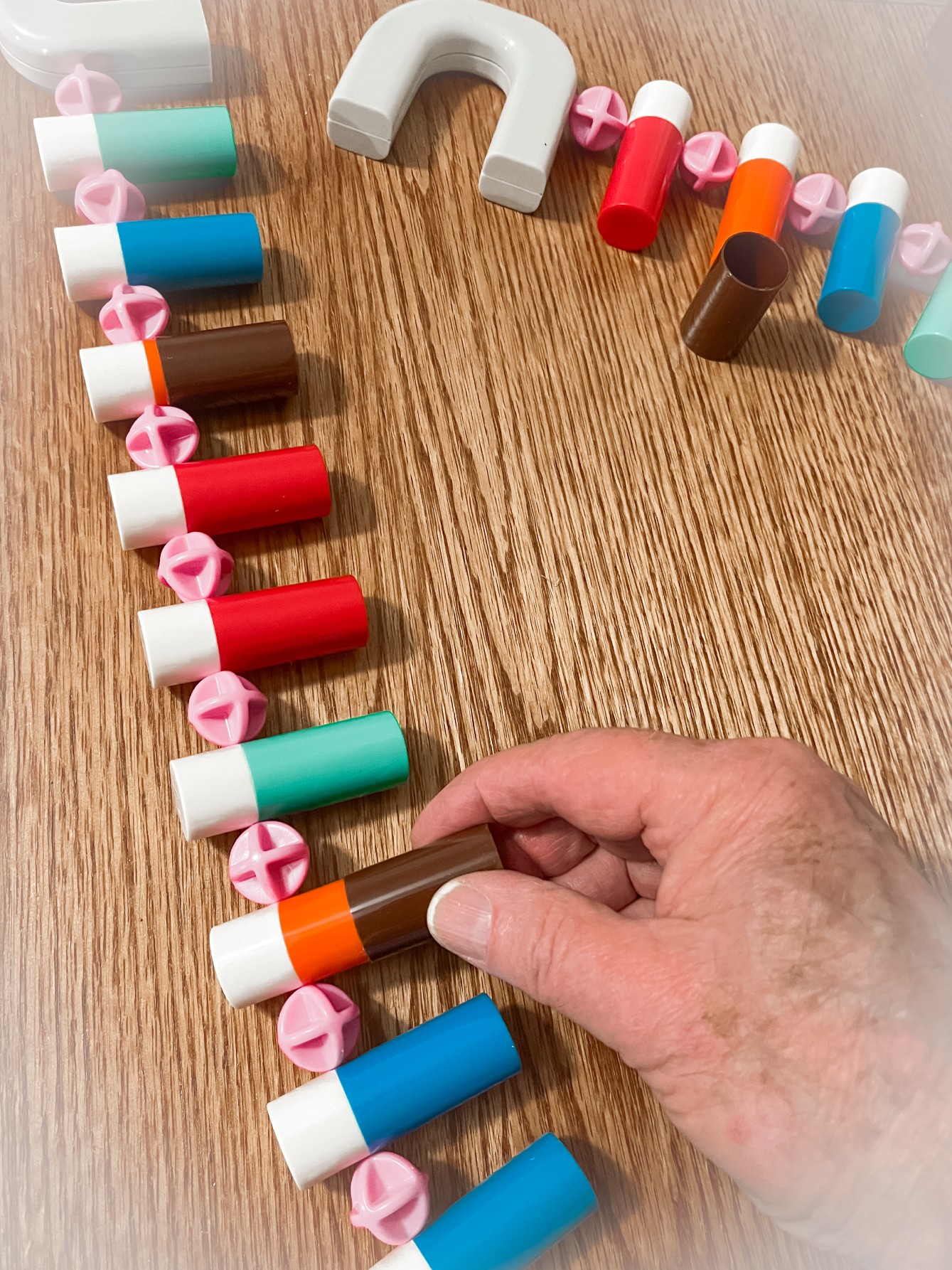 Unlock a deeper understanding of genetic processes. This set of 11 umber-colored tubes works with your existing DNA Model (sold separately) to illustrate the crucial conversion of DNA to RNA. By representing uracil (U), these tubes provide a clear visual and tactile way to differentiate between DNA and RNA, with the umber color acting as a helpful memory aid.
