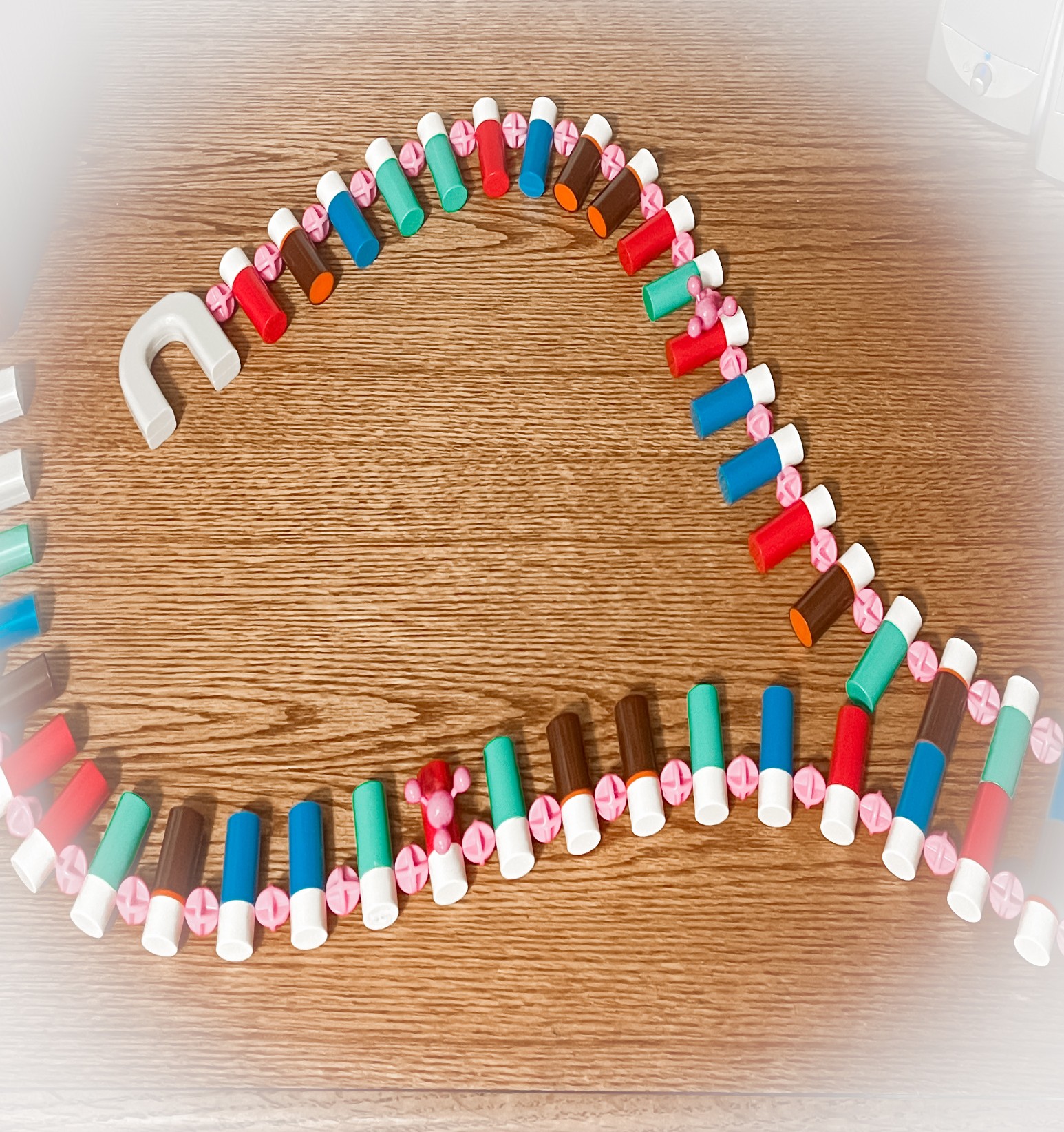 Extend the educational capabilities of your DNA Model (sold separately) with this set of umber-colored tubes. Designed to represent uracil (U) in RNA, these tubes allow you to easily convert your DNA model to illustrate the key differences between DNA and RNA structures. The distinctive umber color serves as a visual aid, reinforcing the unique base composition of RNA.